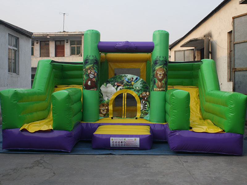 Надувной батут средних размеров Рио - веселая раскраска и две полноценные гори. Посередине батута крытый домик с лестницами в обе стороны. Со всех сторон закрыт прочной сеткой. Рекомендованы возраст посетителей от 3-х лет. Абсолютно безопасен в использовании. ГОСТ РФ.