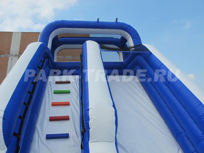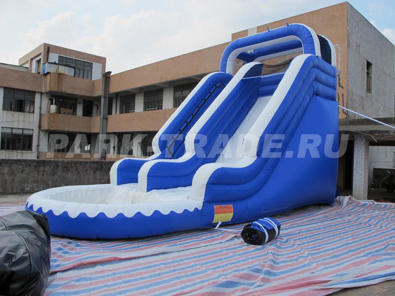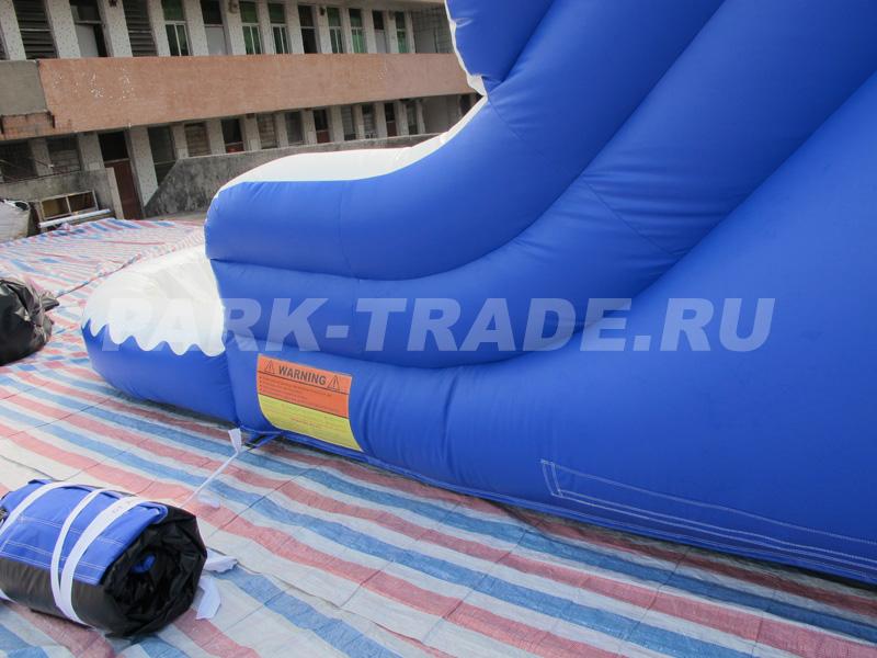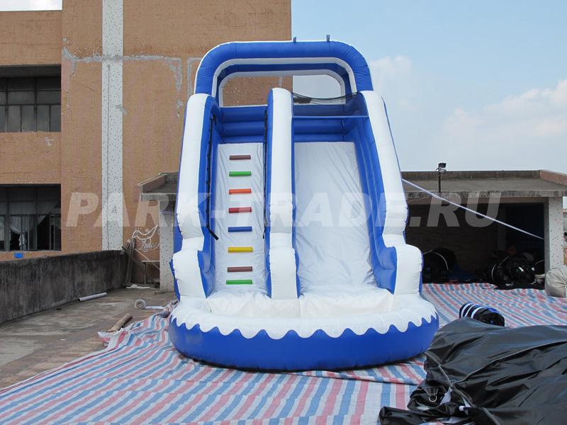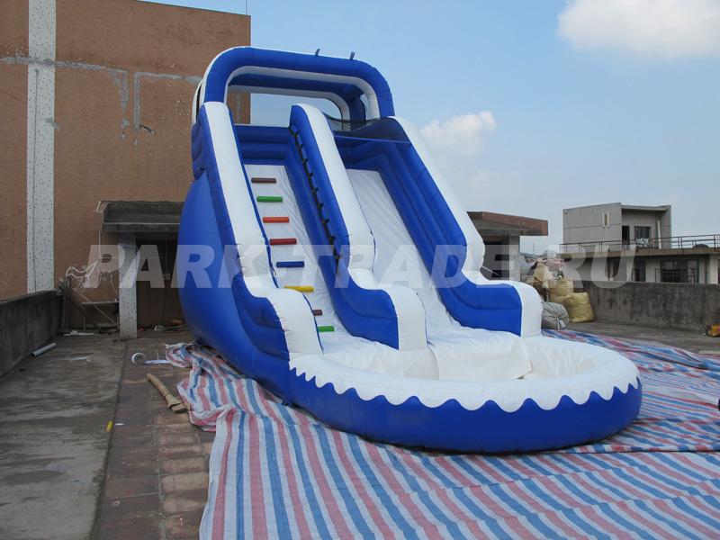 Надувная горка цвета морской волны, замечательный цветовой контраст и размеры будут заметны из далека. Бассейн у основания позволяет использовать эту горку как в качестве водного аттракциона так и заполнить бассейн пластиковыми шариками и использовать как быстро окупаемый аттракцион.
